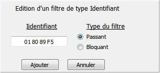 Une fois le port série fermé, dans le menu filtre choisir l'option "Filtre ID" du sous menu "Ajouter/Modifier".