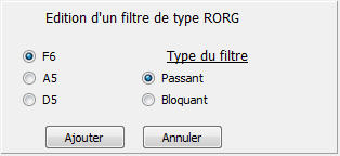 Une fois le port série fermé, dans le menu filtre choisir l'option "Filtre RORG" du sous menu "Ajouter/Modifier".